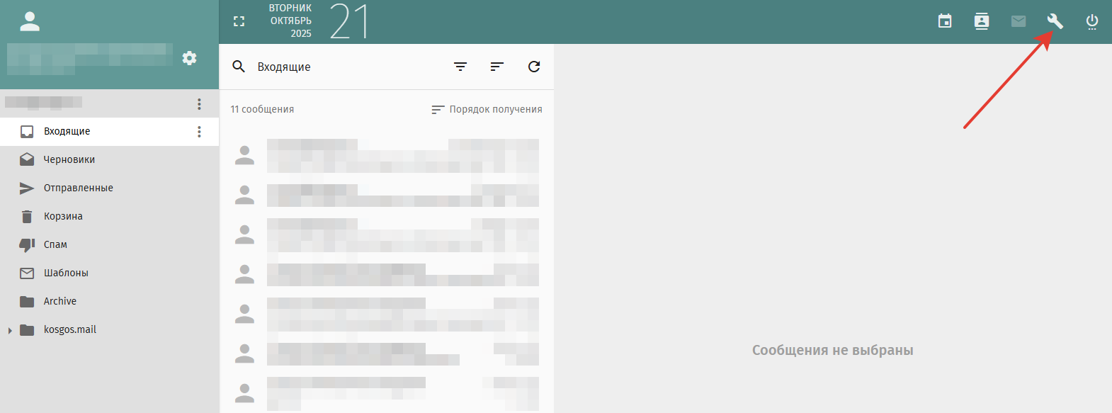 - Авторизуемся в почте по адресу: https://mail.kosgos.ru/