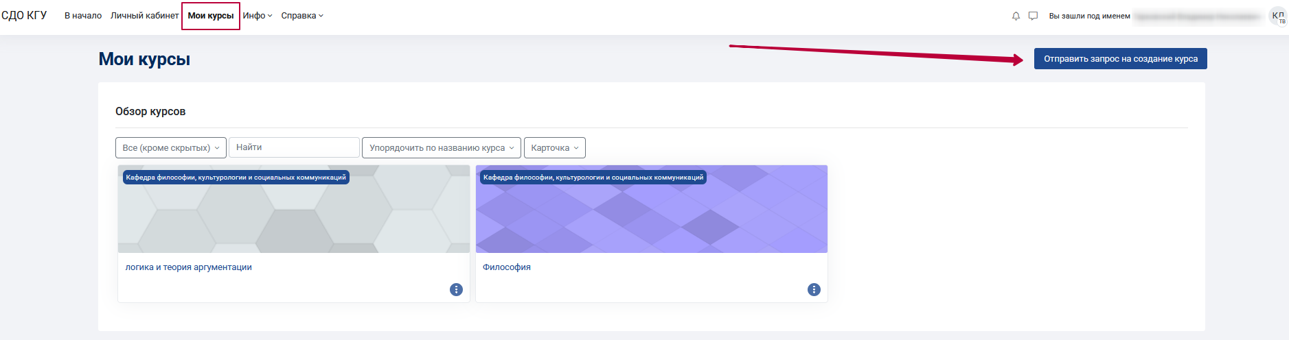 В разделе МОИ КУРСЫ жмём кнопку Отправить запрос на создание курса или перейти по этой ссылке